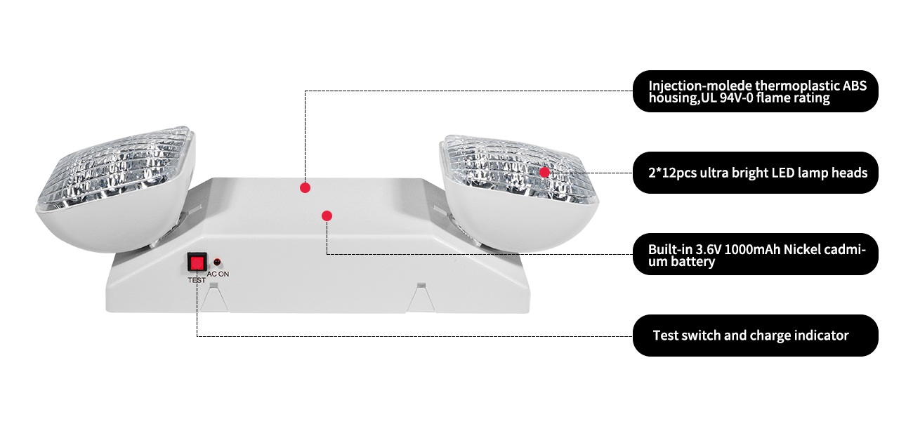 *ILLUMINATION - Emergency lamps use long-lasting, energy efficient ultra bright white LEDs. Heads are made with high-performance chrome plated reflectors and polycarbonate lenses for optimal light distribution.
