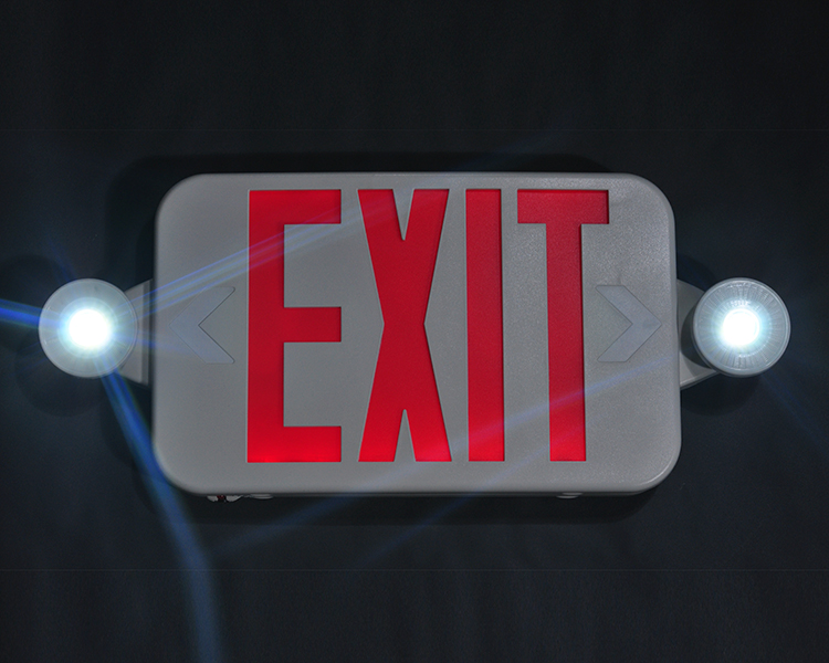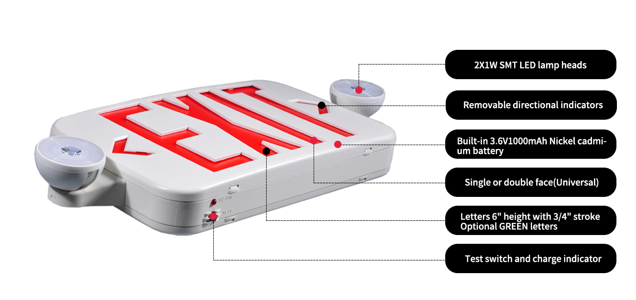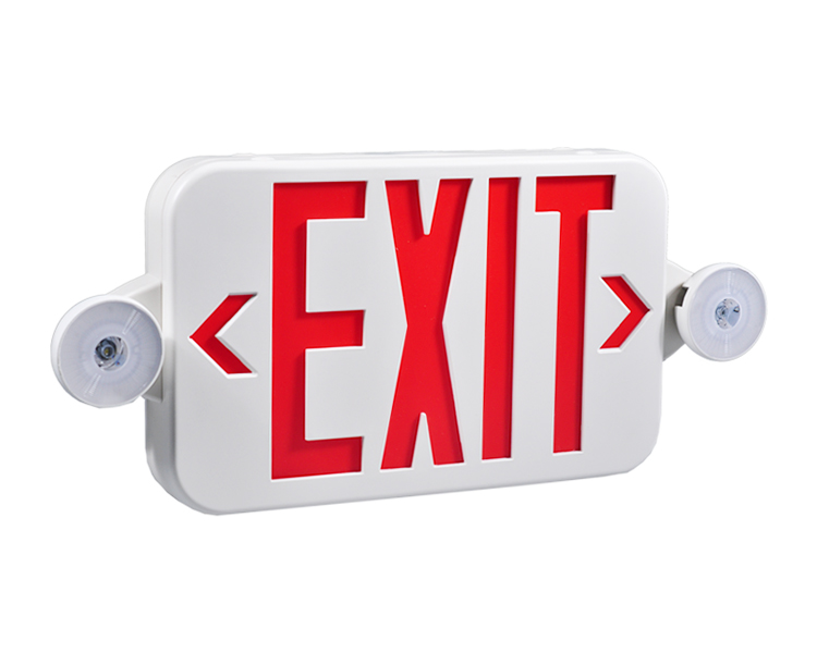 An efficient and secure Exit Sign / Emergency Light Combo. Save money buying this 2-in-1 product. Long lasting, low maintenance Ni-Cad battery. Works on 120 - 277 VAC universal voltage. Faceplate includes knock-out left/right arrows. Fixture is 1 or 2 sided. Product is UL Listed and meets NFPA 101, OSHA and UL 924 emergency codes. As a home, commercial and industrial lighting, perfect for hallway, corridor, hospital, apartments, churches, shopping malls, supermarkets, schools, hotel, pub, restaurant, warehouses, office building, etc.