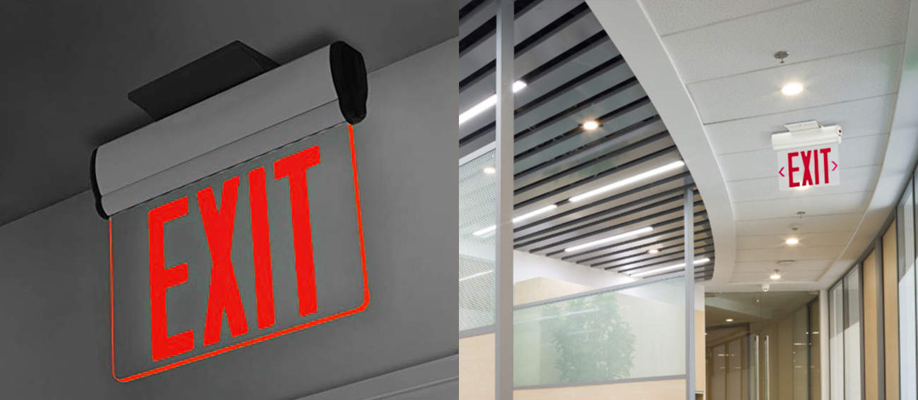*EASY INSTALLATION IN MINUTES - The Edge Lit Exit Sign is suitable for wall, sloped, high, or standard ceiling mounting. Includes field installable directional arrow indicators. All hardware is included.